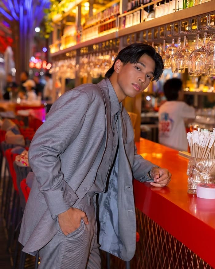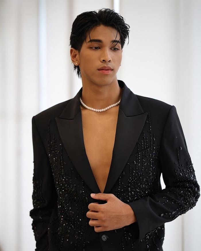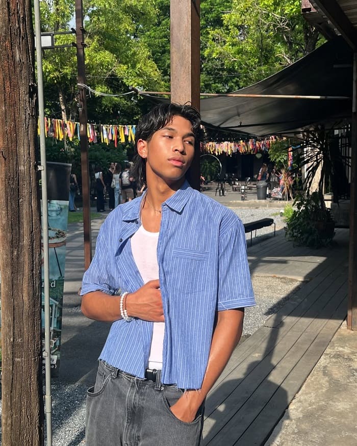 Không quá chú trọng vào nét đẹp hoàn hảo, Peem Nathapat Prabhananda thu hút người nhìn bởi vóc dáng săn chắc, bờ vai rộng và khí chất đàn ông mạnh mẽ. Làn da ngăm đen và ánh mắt sắc lạnh tạo nên một hình mẫu “góc cạnh” khiến anh trở nên khác biệt trong dàn diễn viên trẻ Thái Lan.