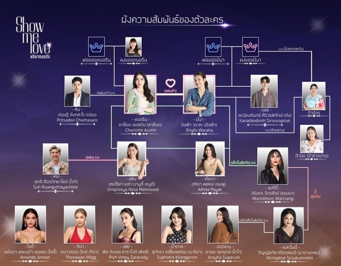Show Me Love (tên Thái: แค่อยากบอกรัก) hay được biết là Chỉ Muốn Nói Yêu Em là series Girl Love đầu tiên đến từ Miss Grand Thailand, kể về hành trình theo đuổi ước mơ và mối quan hệ dần nảy sinh giữa Meena và Cherine. Giữa những áp lực gia đình, quá khứ và lựa chọn cá nhân, câu chuyện tình cảm của họ mở ra một hành trình nhẹ nhàng nhưng đầy cảm xúc.