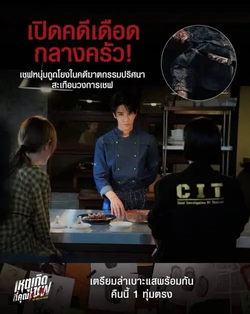 My Chef in Crime The Series (tên Thái: เหตุเกิดที่คุณเชฟ) là một series Thái Lan thuộc thể loại crime drama kết hợp yếu tố ẩm thực và khoa học pháp y, mang đến hướng tiếp cận mới lạ cho dòng phim điều tra. Câu chuyện theo chân Chef Charn – cựu chuyên gia pháp y trở thành đầu bếp – người bị cuốn vào một vụ án mạng bí ẩn và buộc phải tự minh oan bằng chính kiến thức chuyên môn của mình. Với không khí căng thẳng, cách phá án thông qua các thí nghiệm ẩm thực và góc nhìn xoay quanh chứng cứ – công lý, My Chef in Crime được định vị là một tác phẩm điều tra mang màu sắc khác biệt trong bối cảnh phim truyền hình Thái Lan.